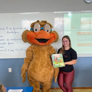A chegada do Professor Corujão foi um momento de pura diversão e aprendizado. O mascote interagiu com os estudantes, reforçando a importância de desenvolver a inteligência emocional desde cedo.